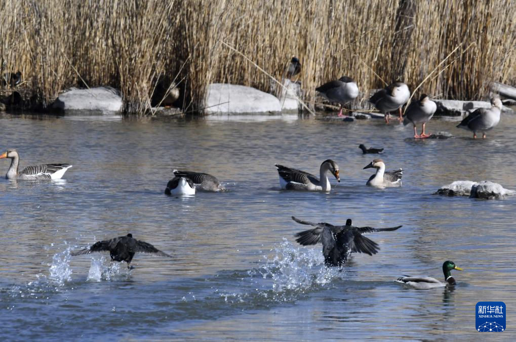 随着天气回暖,大批斑头雁、灰雁、野鸭等鸟类来到北京奥林匹克森林公园的水面嬉戏、觅食。近年来,北京生态环境逐年改善,北京市境内的湿地、河湖成为许多野生鸟类的栖息地。