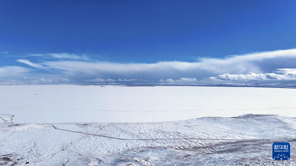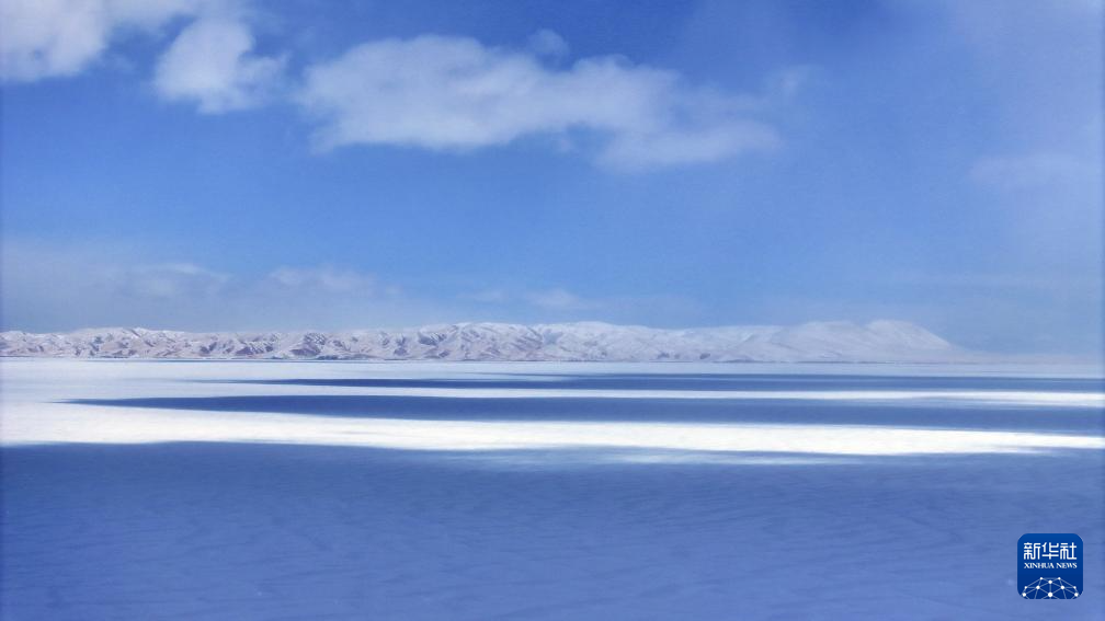 这是2月22日拍摄的雪后的鄂陵湖一角(无人机照片)。