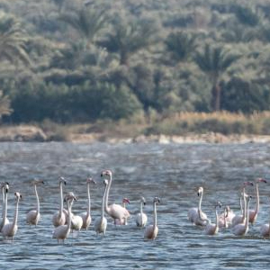 每年冬季,大批火烈鸟会飞抵埃及法尤姆省内的加龙湖觅食越冬。