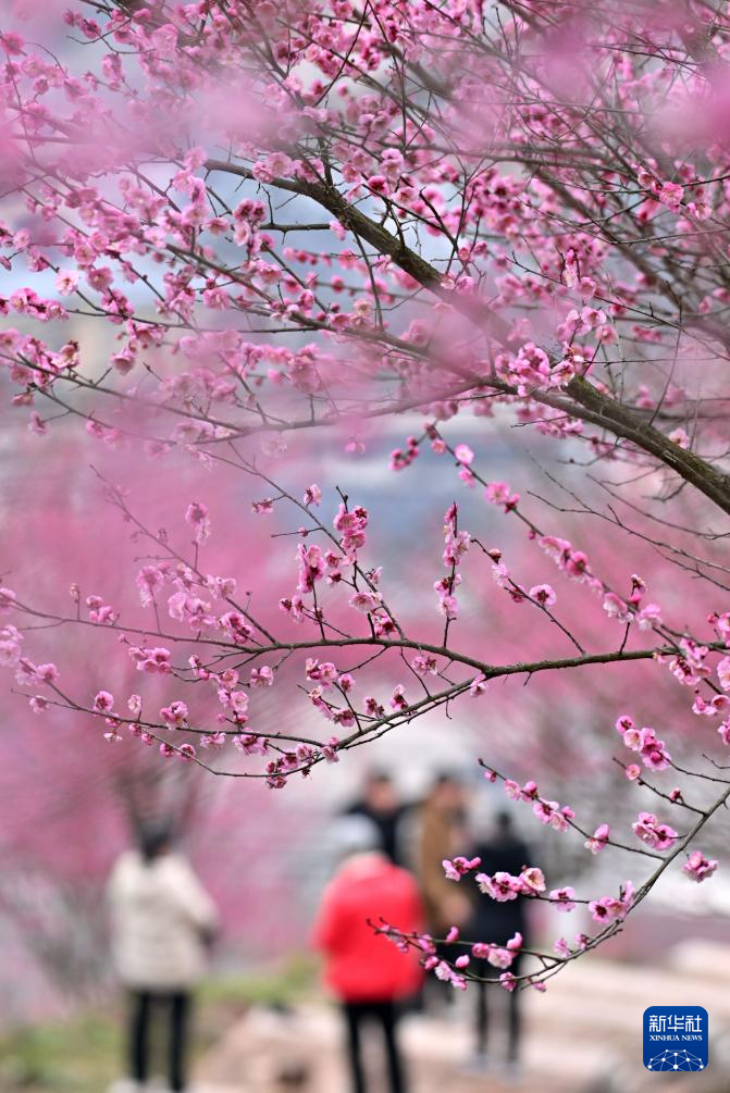 2月24日,游客在湖北省宣恩县珠山镇花园堡梅园游玩。