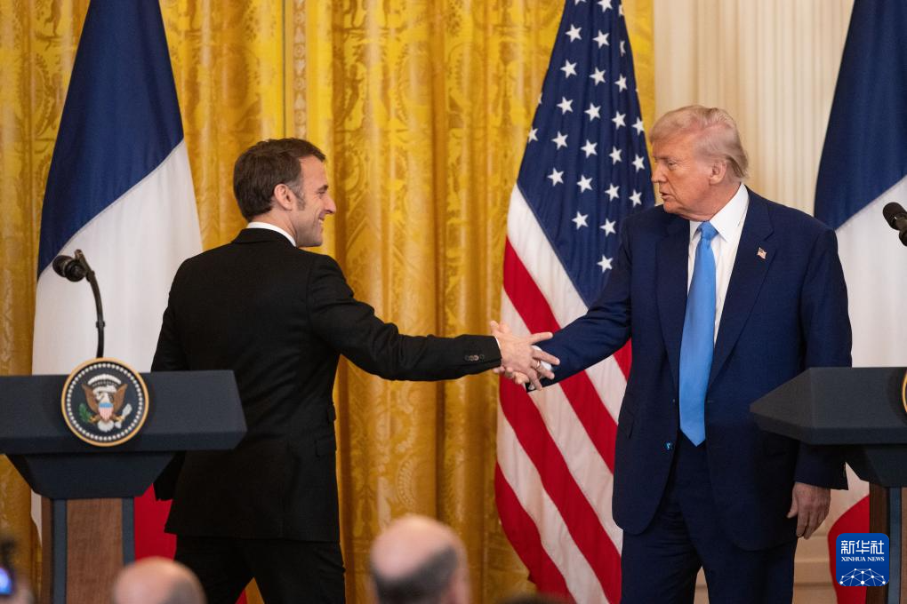 2月24日,美国总统特朗普(右)在华盛顿白宫与到访的法国总统马克龙举行会谈后的联合记者会。