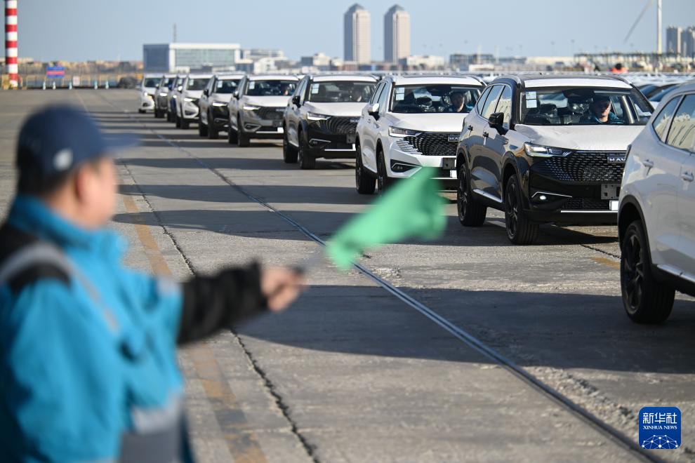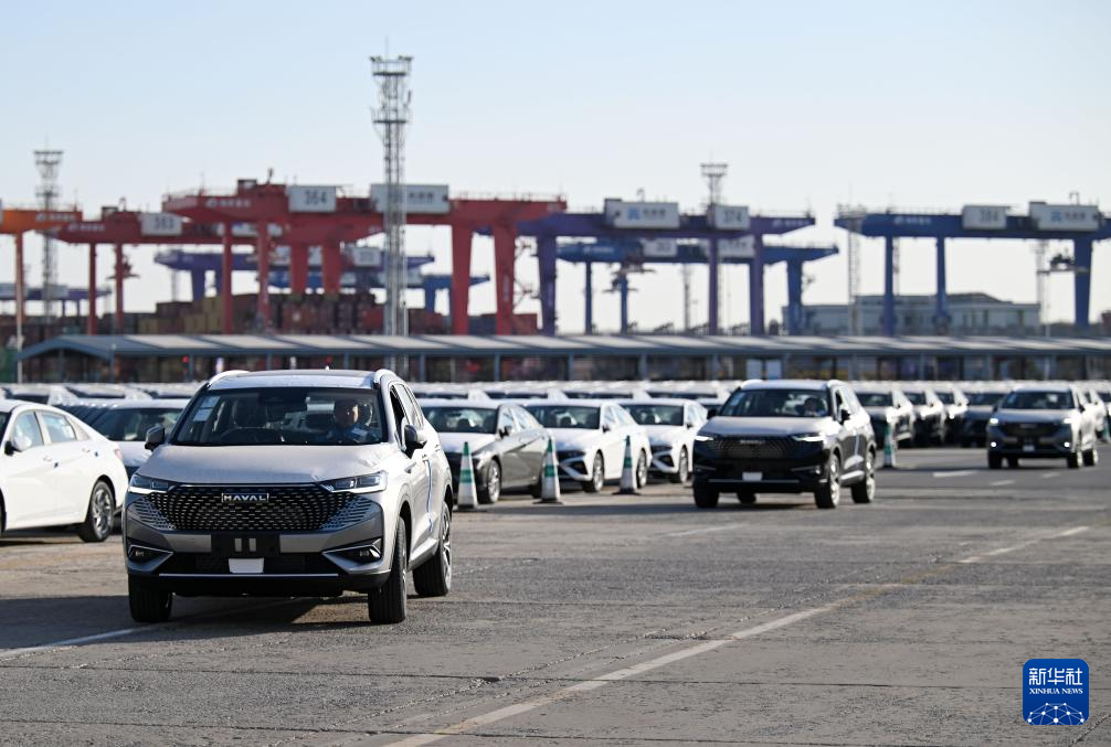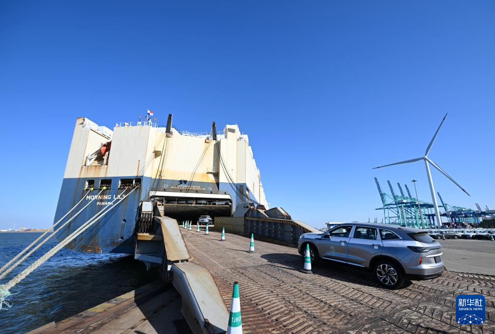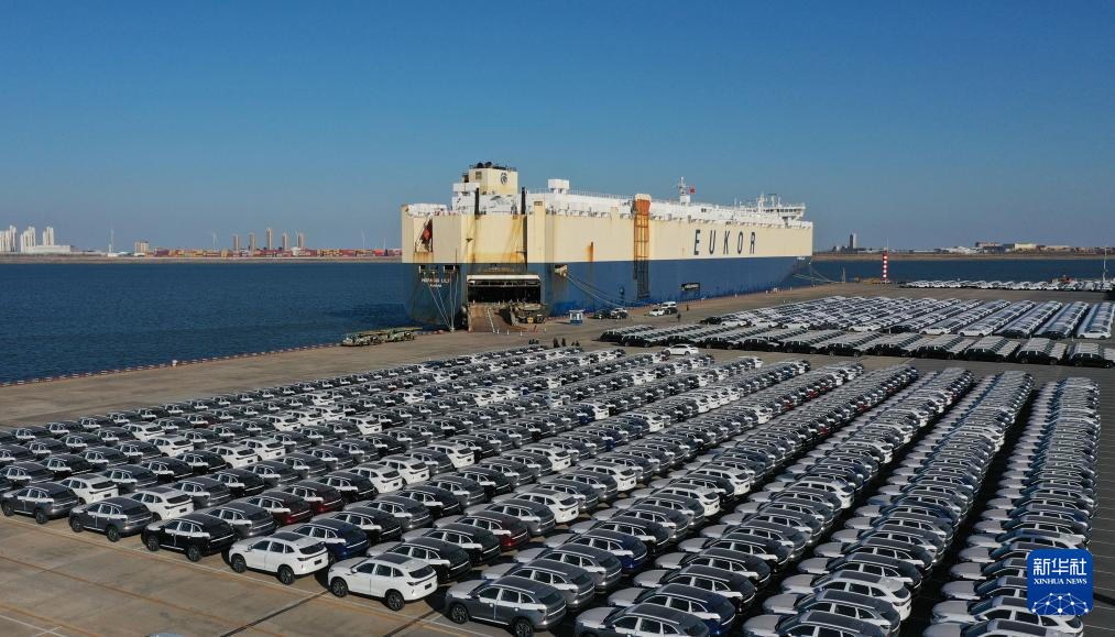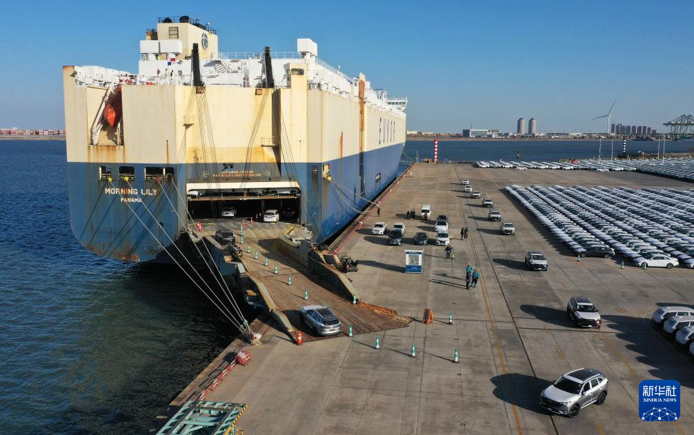 2月26日,装载着超4000辆国产自主品牌汽车的货轮驶离天津港环球滚装码头。