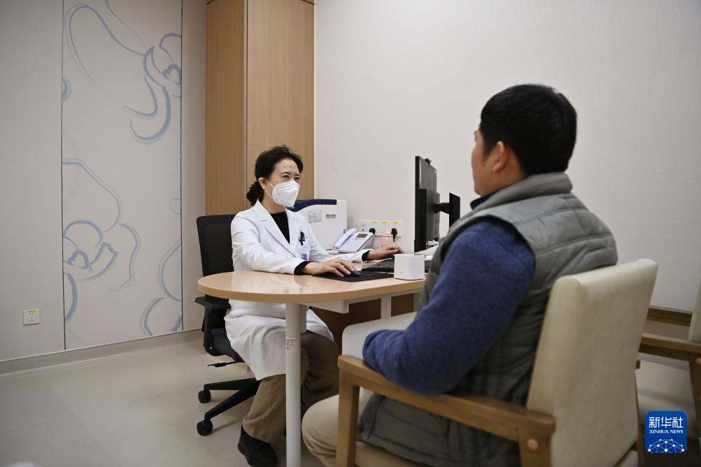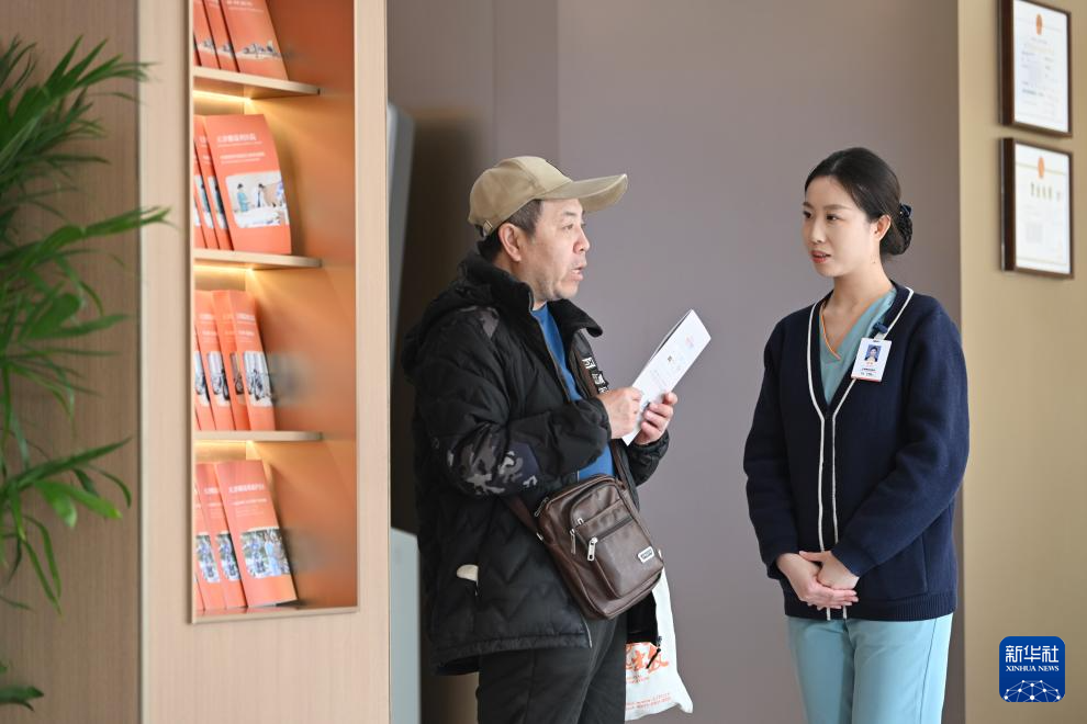 2月26日,在天津鹏瑞利医院,医护人员解答患者疑问。