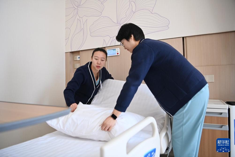 2月26日,医护人员在天津鹏瑞利医院整理床位。