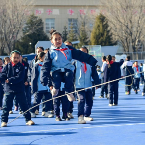 图为在新疆乌鲁木齐县第一中学小学部,学生在大课间跳绳(2月21日摄)。