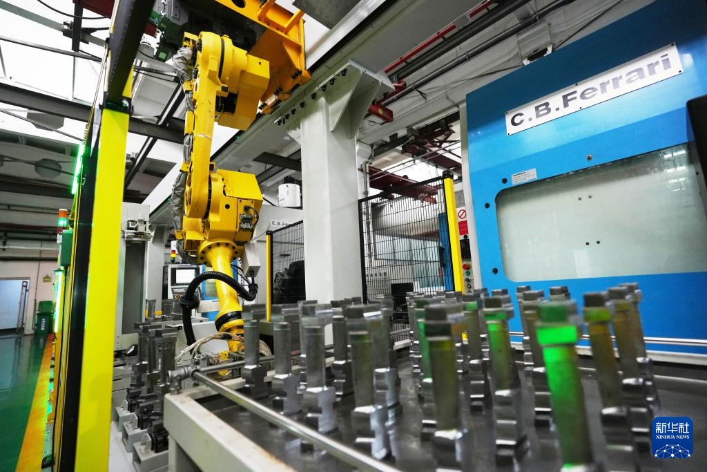 在哈尔滨电机厂有限责任公司线圈分厂智能制造车间,智能设备对绝缘线棒进行加工作业(2月26日摄)。