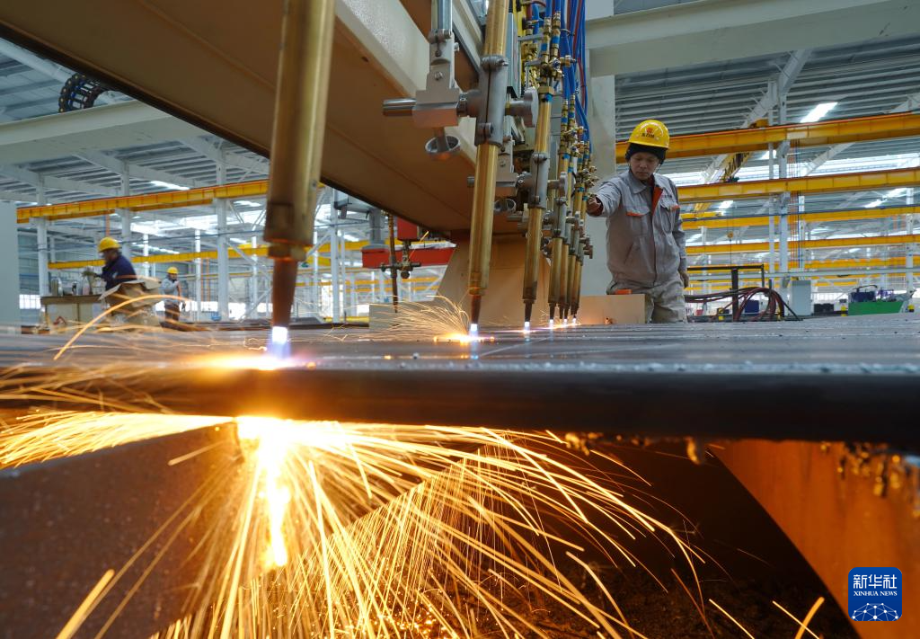 2月27日,河北省唐山市芦台经济开发区一家集成房屋制造企业的智能切割设备在工作中。