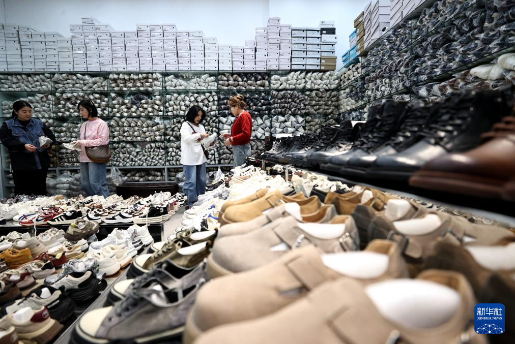2月26日,顾客在京津冀(固安)国际商贸城选购鞋子。