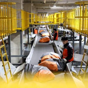 2月26日,工人在固安县的申通快递华北转运中心内工作。