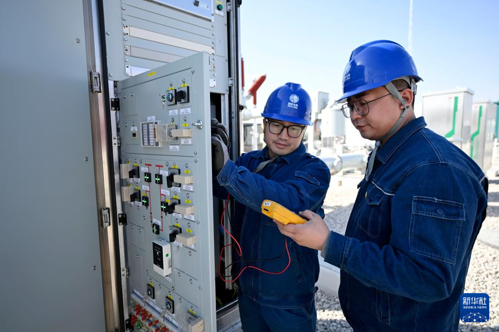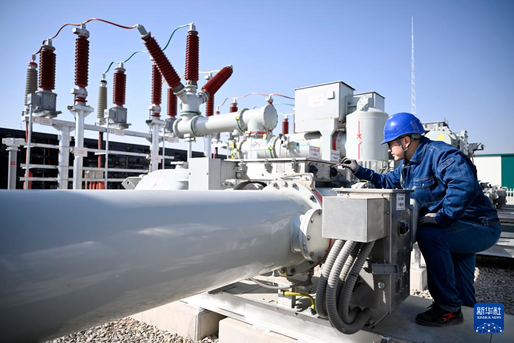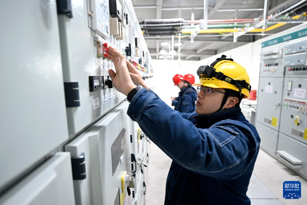 2月27日,国网银川供电公司工作人员在宁夏银川原隆110千伏变电站进行投用前的设备检查工作。