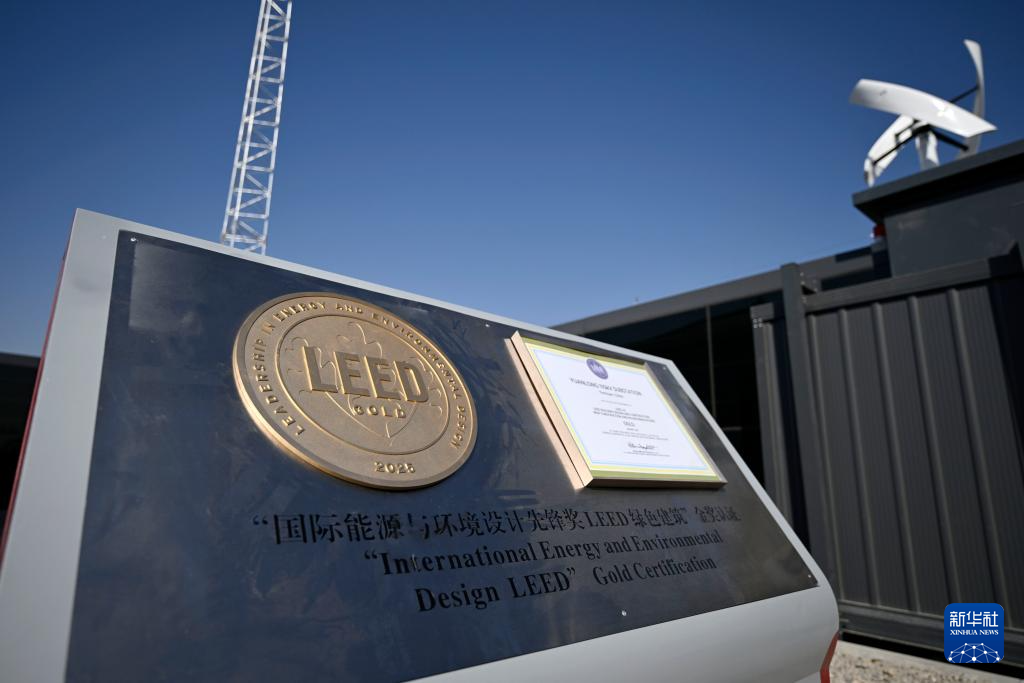 图为2月27日在宁夏银川原隆110千伏变电站内拍摄的“国际能源与环境设计先锋奖LEED绿色建筑”金奖认证牌匾。