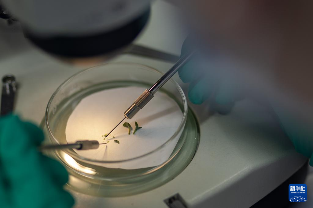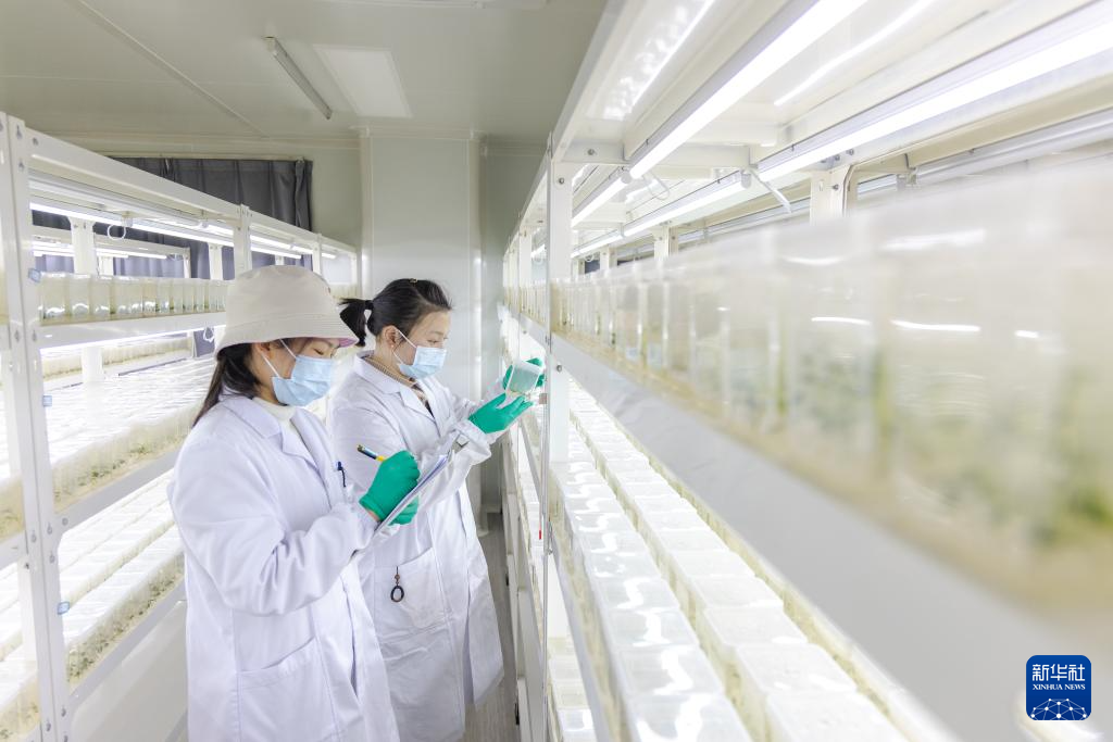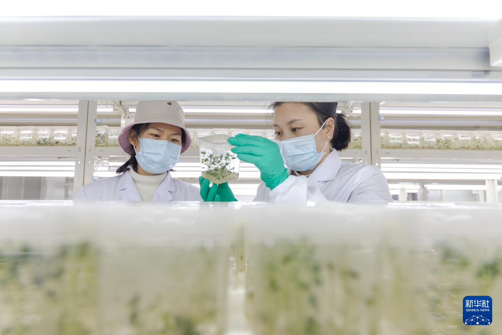 2月26日,在重庆市巫溪县文峰镇脱毒马铃薯原原种生产基地,技术人员检查脱毒马铃薯试管苗的生长情况。