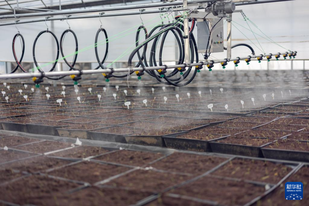 2月26日,在重庆市巫溪县文峰镇脱毒马铃薯原原种生产基地,水肥药一体化智能设备对新实验的优质多抗马铃薯苗进行智能喷洒。
