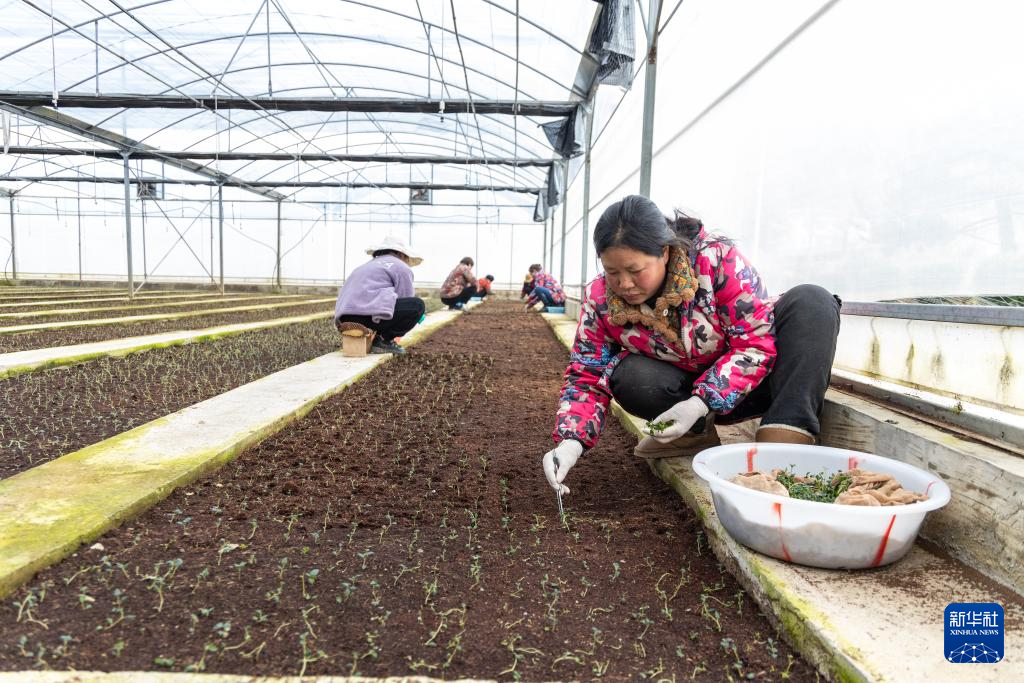 2月26日,在重庆市巫溪县文峰镇脱毒马铃薯原原种生产基地,工人在移栽脱毒马铃薯苗。