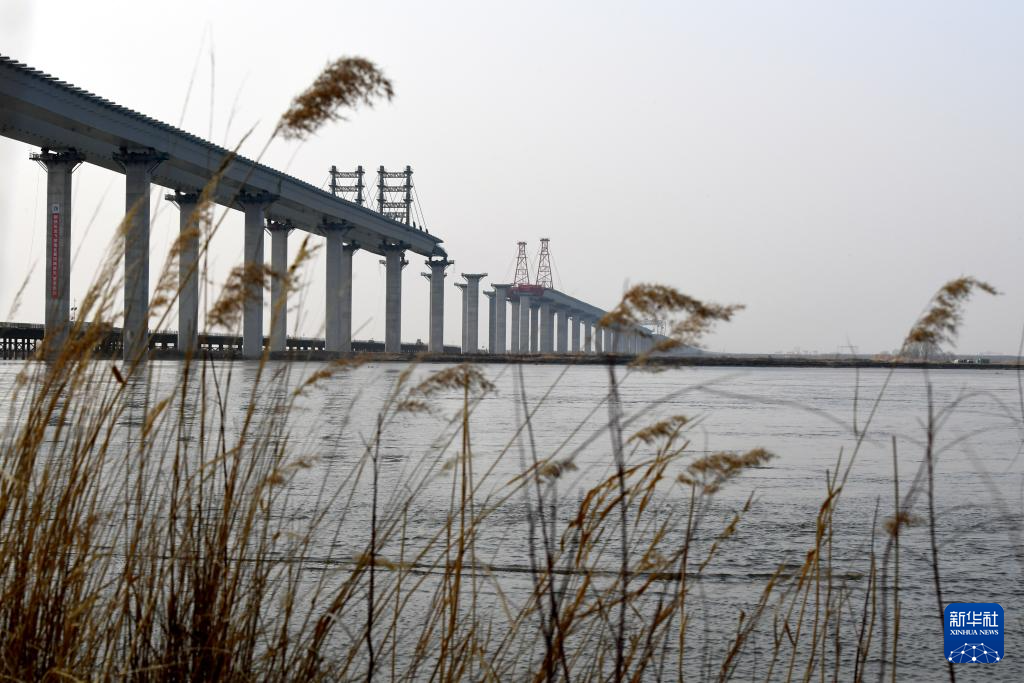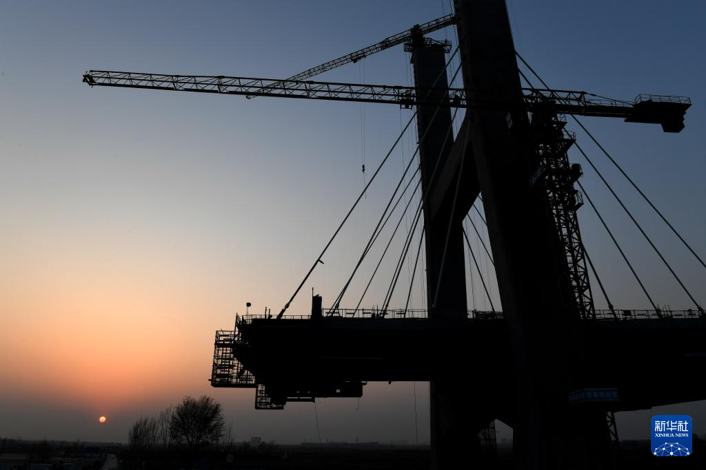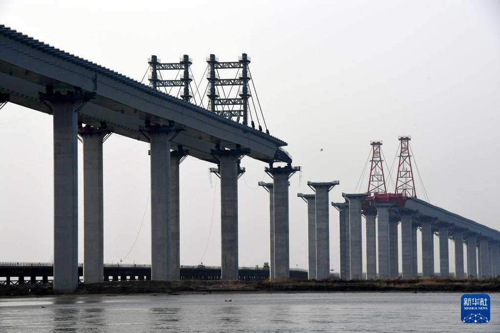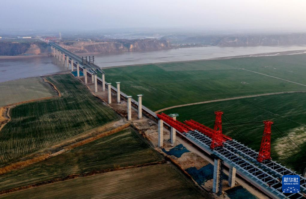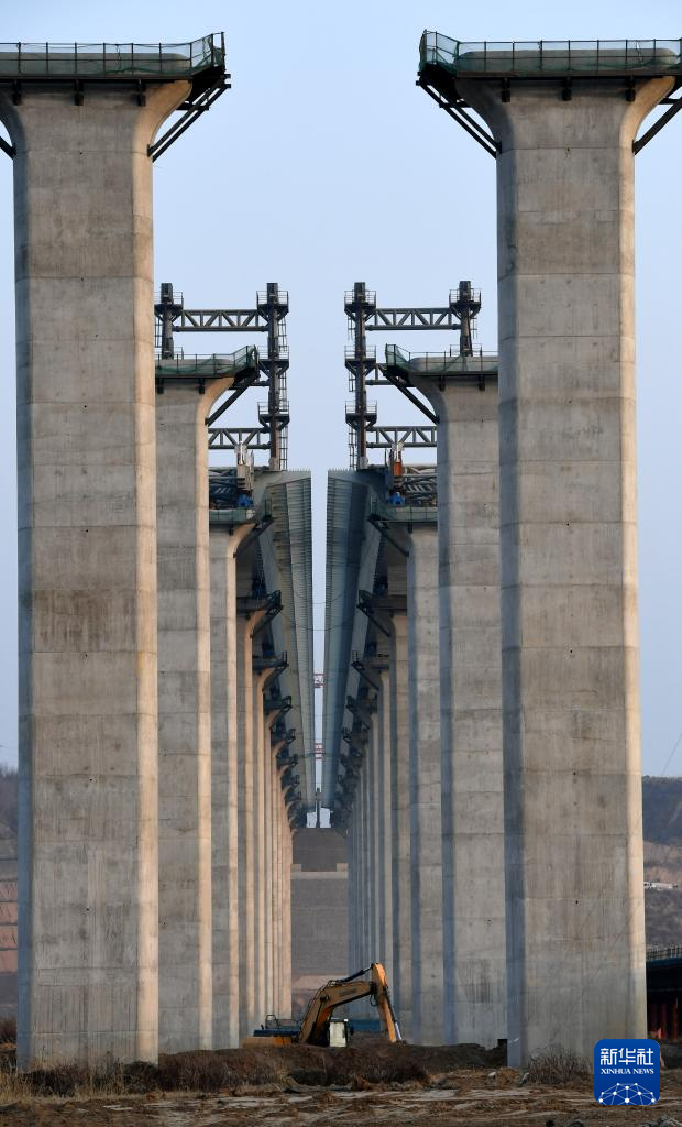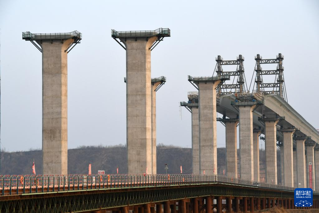 2月26日拍摄的焦平高速公路黄河特大桥主桥施工现场。