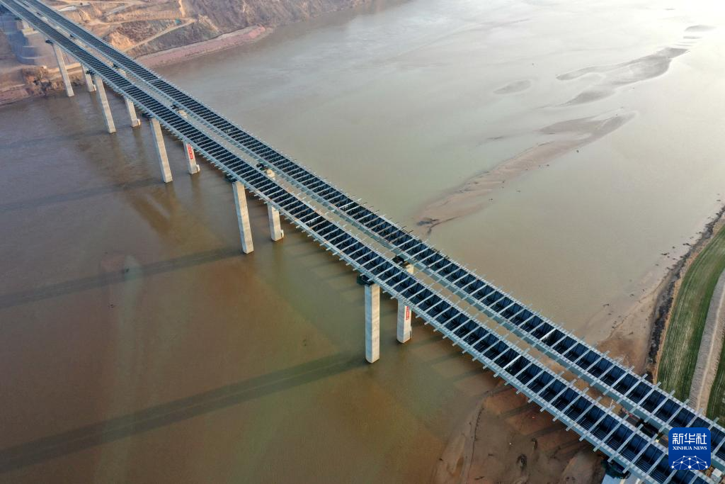 2月26日拍摄的焦平高速公路黄河特大桥主桥施工现场(无人机照片)。
