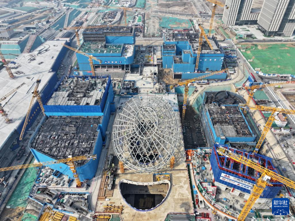 这是雄安新区国贸片区建设现场(2月27日摄,无人机照片)。