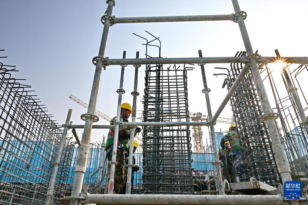 2月27日,中建三局工人在中国矿产资源集团有限公司雄安总部项目建设现场施工。