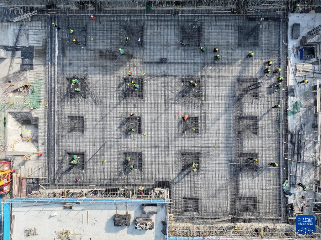 2月27日,中建三局工人在雄安科创中心二期项目建设现场施工(无人机照片)。