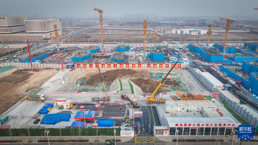 早春时节,河北雄安新区多处建设工地塔吊林立、机器轰鸣、车辆穿梭,数以万计的建设者以高标准高质量推进项目建设,呈现出一派热火朝天的繁忙景象。