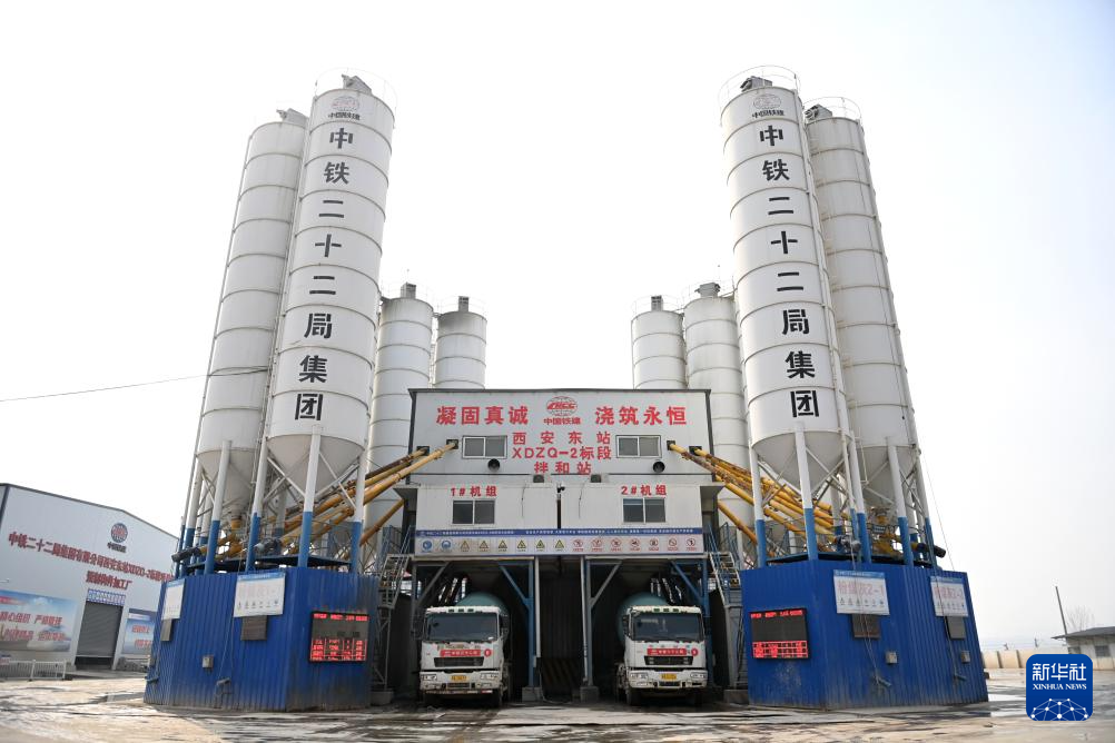 2月28日,中铁二十二局XDZQ-2标段拌和站为西安东站建设生产水泥混凝土。