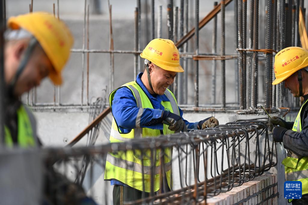 2月28日,中铁二十二局施工人员在西安东站进行施工建设。