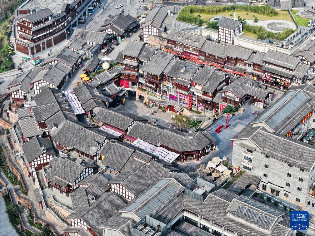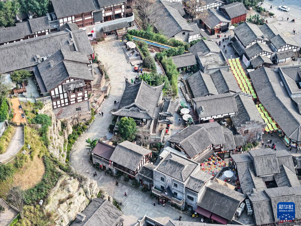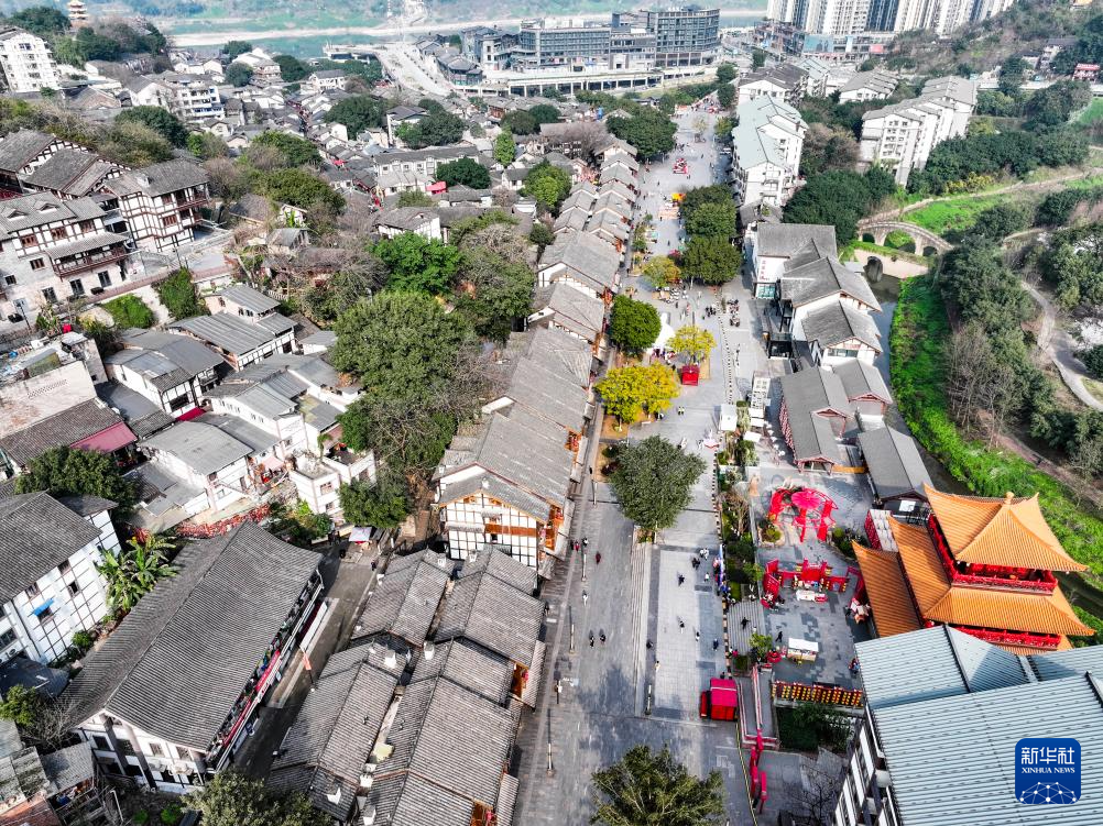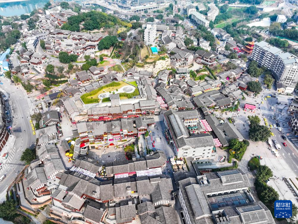 这是2月28日拍摄的重庆磁器口古镇景色(无人机照片)。