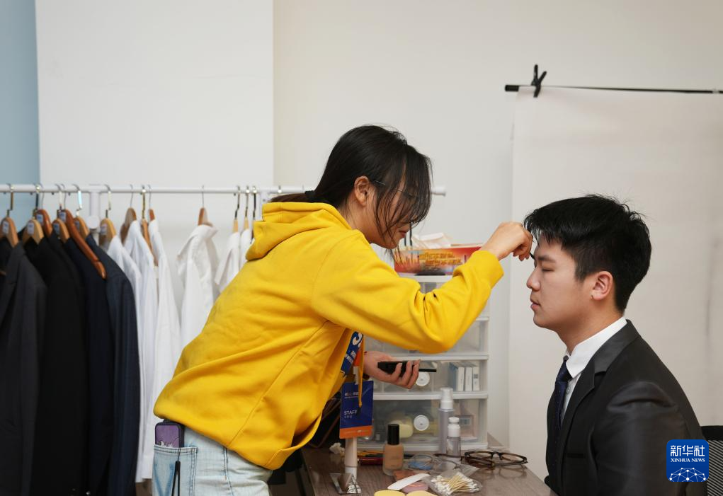 正值求职季,上海外国语大学“西索职秀”职业形象打造工作室的师生们也忙碌着。
