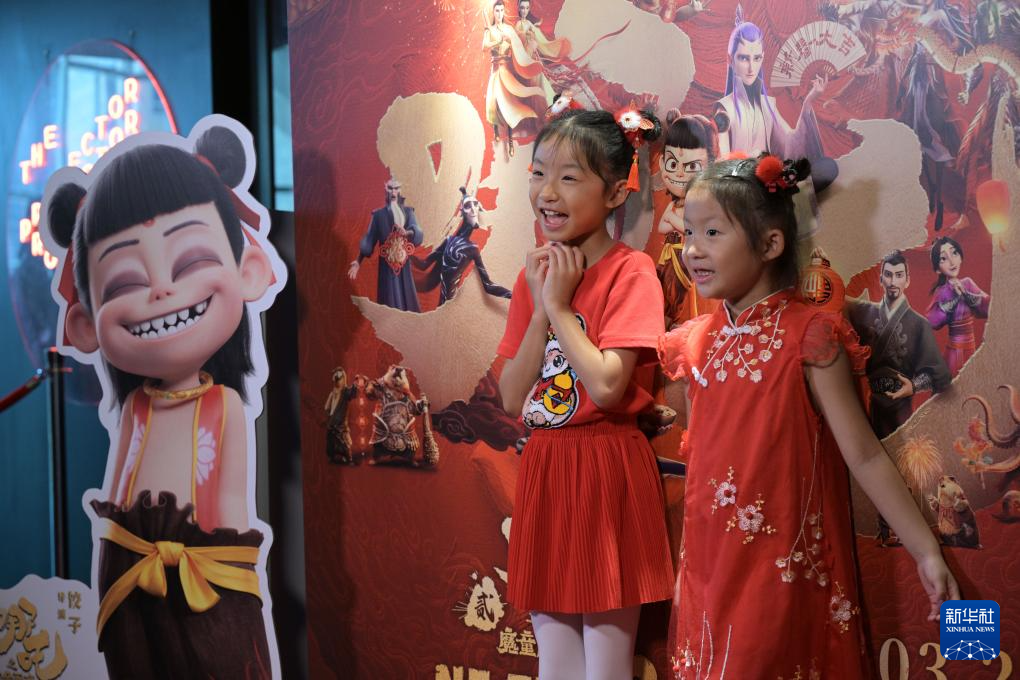 3月2日,两名小朋友参加电影《哪吒之魔童闹海》新加坡首映礼。