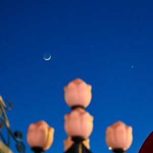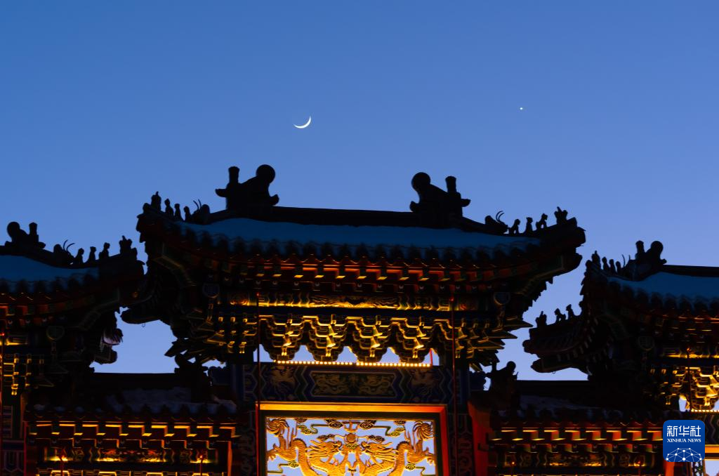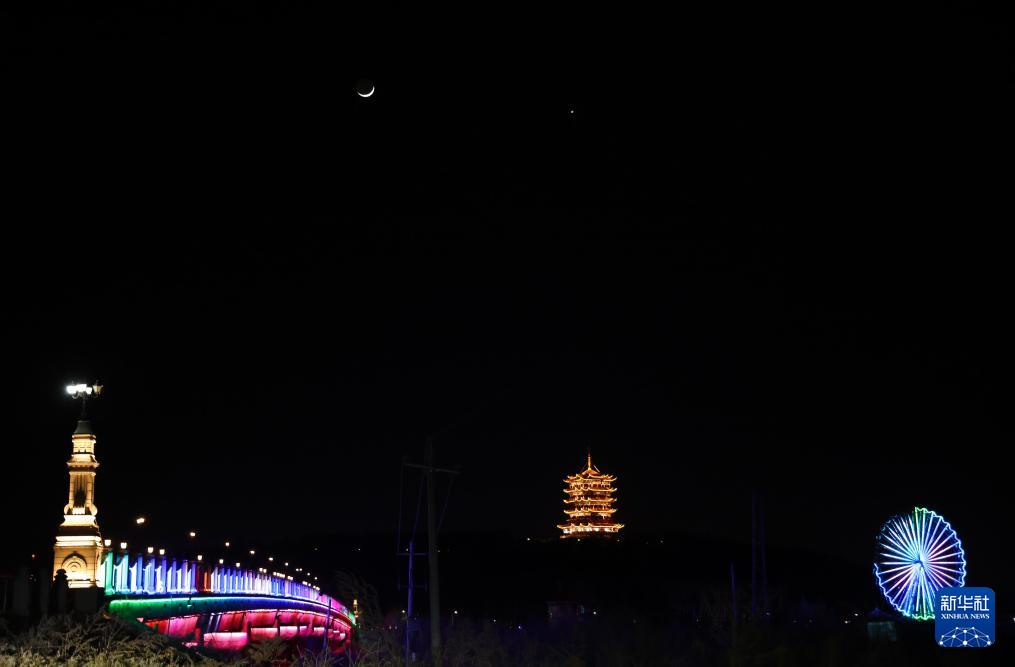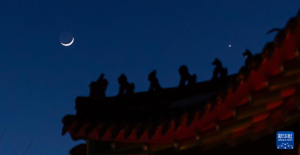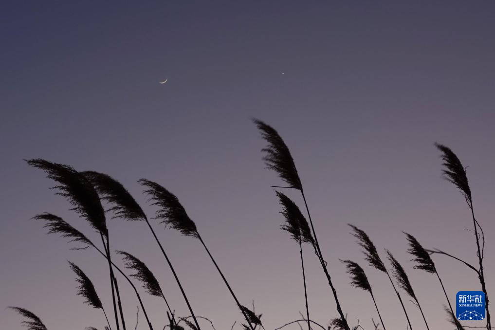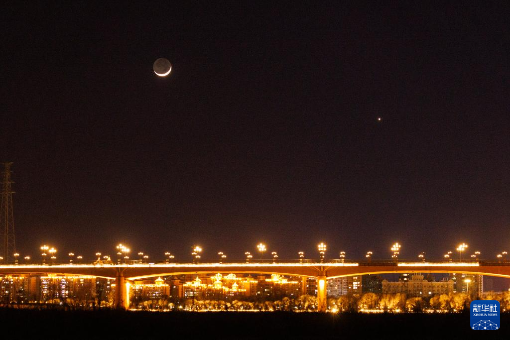 3月2日在黑龙江省绥化市拍摄的金星伴月。
