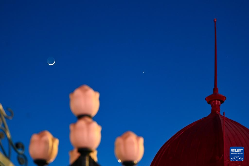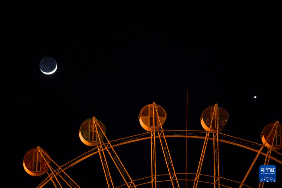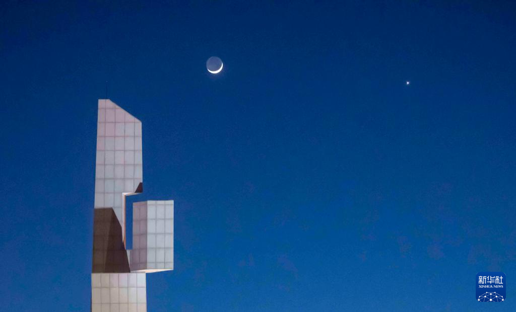 当日,天宇上演金星伴月,这是今年金星以长庚星姿态最后一次近距离与蛾眉月“相会”。