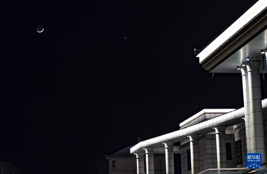3月2日在黑龙江省牡丹江市拍摄的金星伴月。
