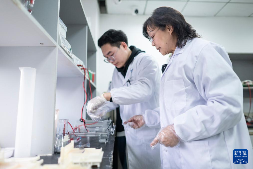 在华中农业大学,金梅林(右)指导学生进行分子克隆相关实验(3月2日摄)。