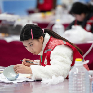 3月6日,参赛选手在参加纸张书画文物修复师项目比赛。