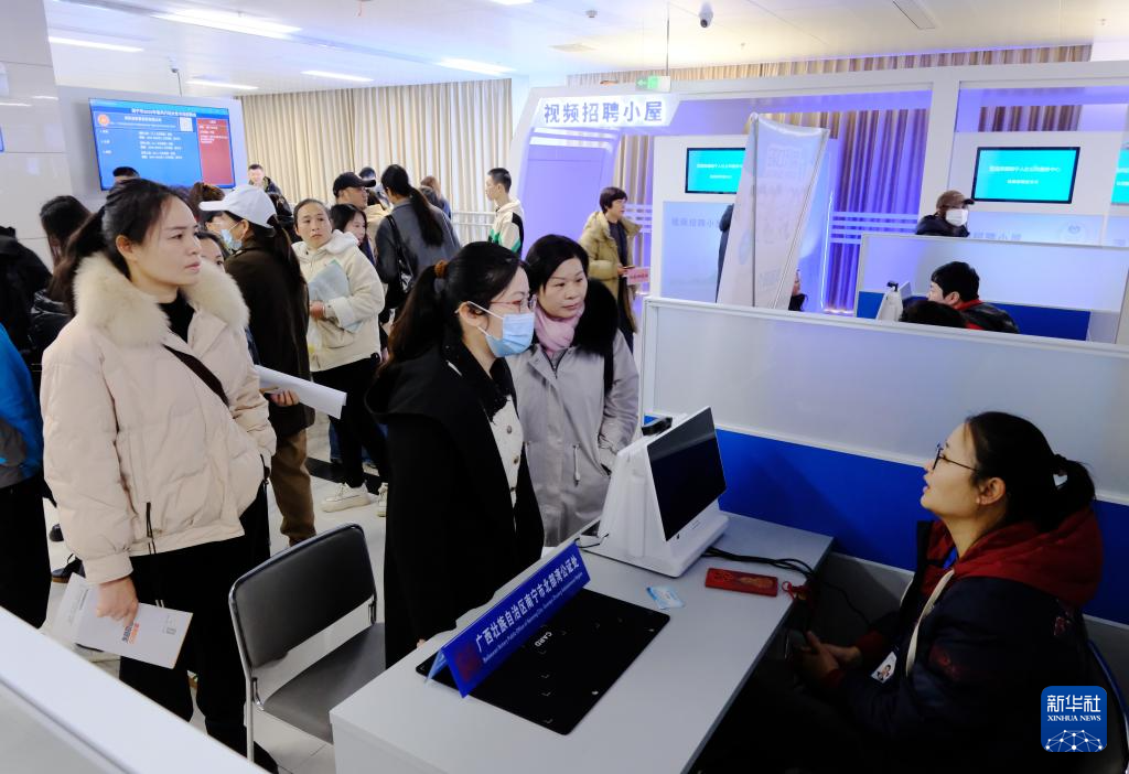 3月7日,在广西南宁市2025年春风行动女性专场招聘会上,求职者在南宁人力资源市场寻找合适的岗位。