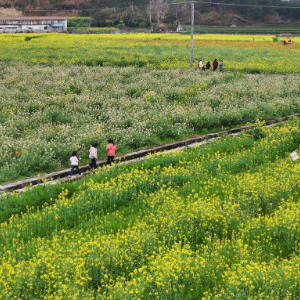 3月8日,游客在广西来宾市忻城县薰衣草庄园油菜花海中赏花游玩(无人机照片)。