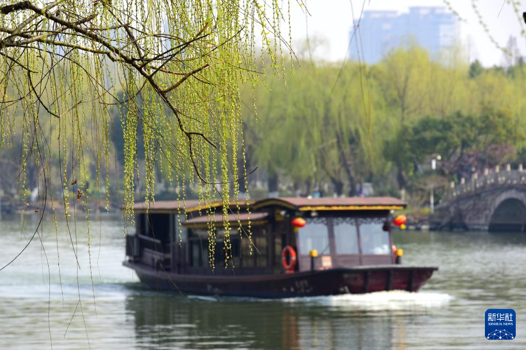 3月8日,一艘游船行驶在浙江省嘉兴市南湖景区内。