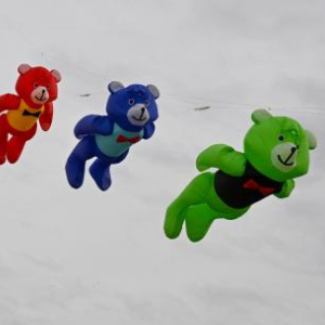 3月8日,在新疆都拉塔口岸房车露营基地,风筝爱好者放飞风筝。