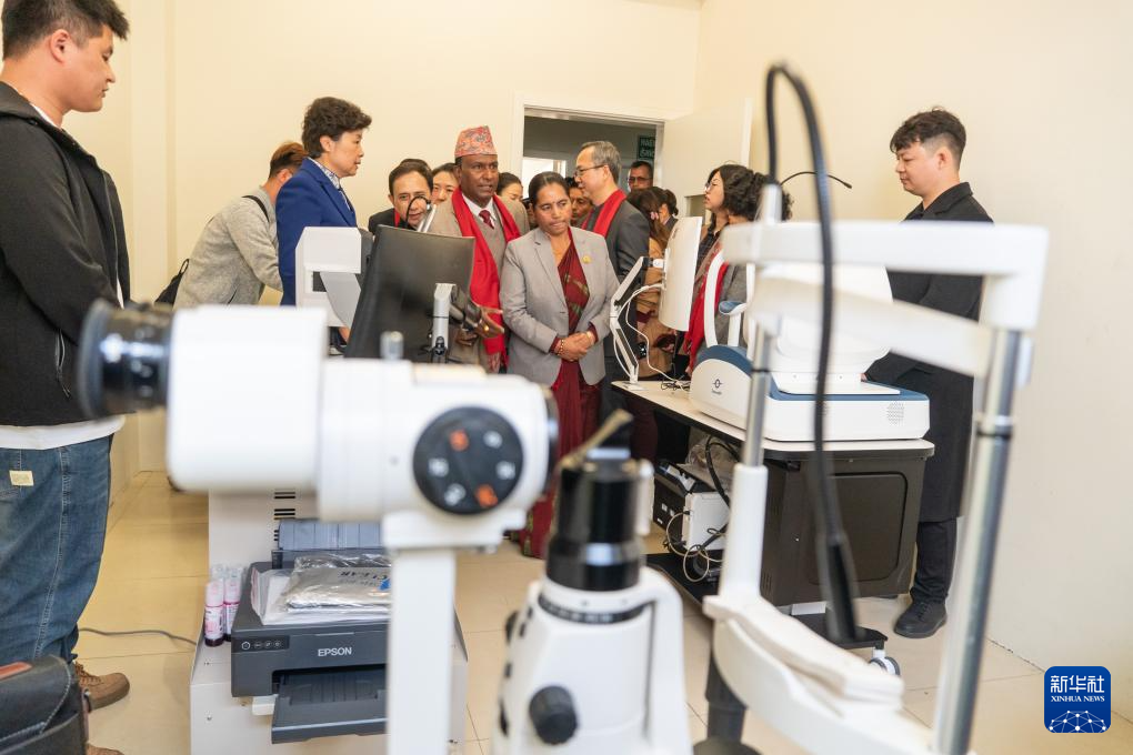 3月7日,在尼泊尔加德满都,中尼嘉宾参观中方捐赠的一批眼科设备及器械。