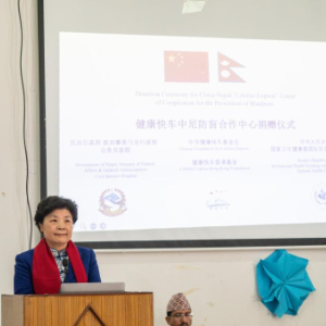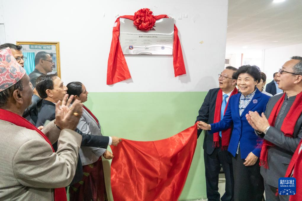 3月7日,在尼泊尔加德满都,中尼嘉宾为“健康快车中尼防盲合作中心”揭牌。