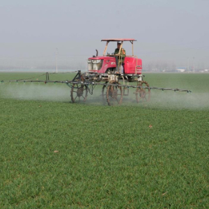 3月8日,邢台市南和区阎里乡阎里村的农民在驾驶农机给冬小麦喷洒杀菌剂。