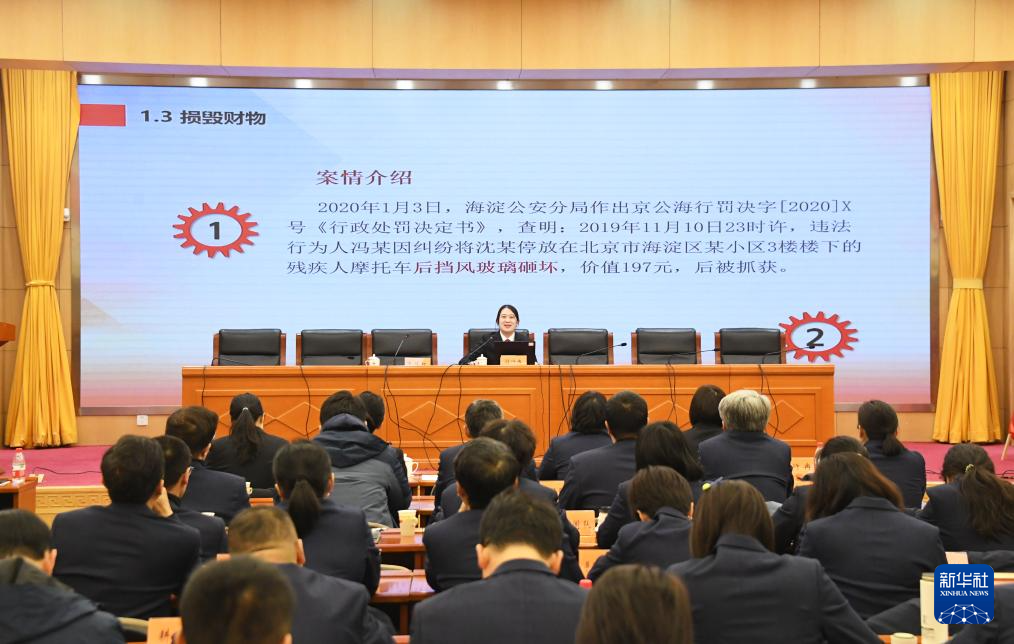 3月4日,在北京市颐和园管理处,海淀区人民法院行政审判庭法官闫行冉在进行题为《做文明守法人——简析治安管理处罚法典型违法情形》的普法授课。