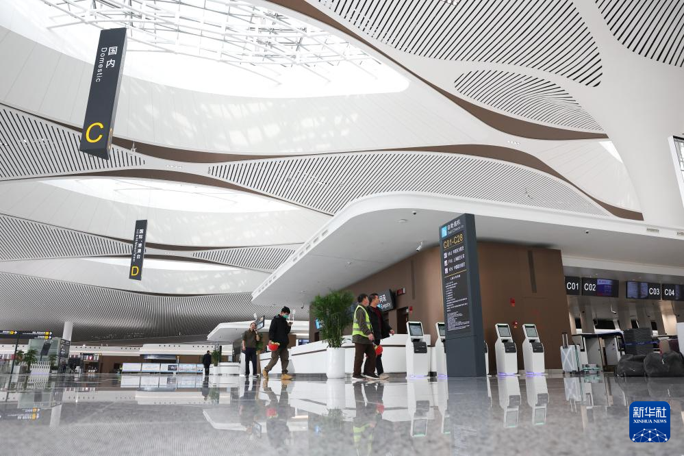 3月11日,工作人员从兰州中川国际机场T3航站楼出发大厅内走过。