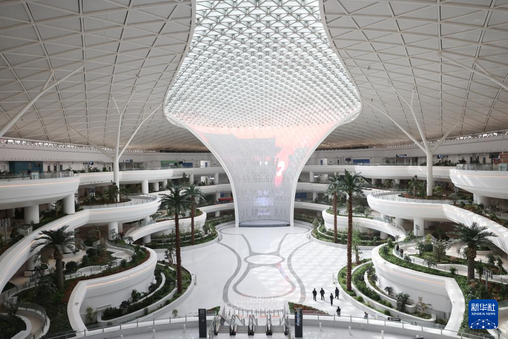 这是3月11日拍摄的兰州中川国际机场T3航站楼外的综合交通中心。