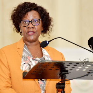 3月11日,联合国粮农组织驻博茨瓦纳代表卡拉·穆恰维在哈博罗内举行的博茨瓦纳可持续野生动物管理项目法律中心揭牌仪式上讲话。