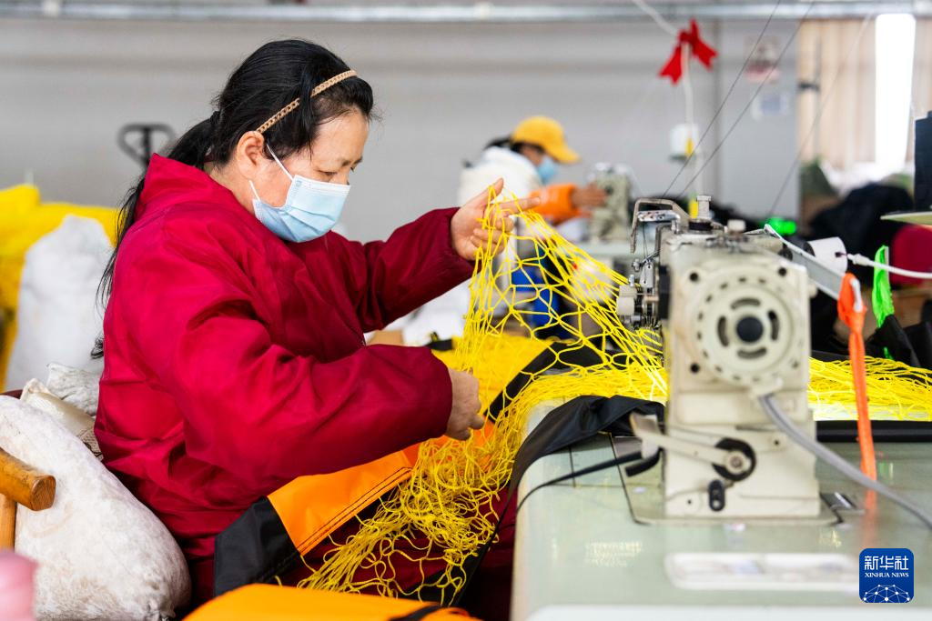 3月12日,在位于沅江高新区的湖南星海运动用品有限公司,工人在检查球网质量。