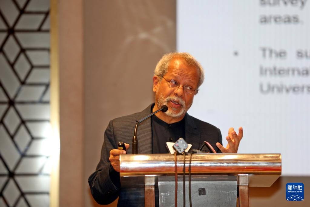 3月11日,孟加拉国智库选择研究中心执行主任伊姆提亚兹在首都达卡举办的《2024年中国在孟加拉国国家形象》民意调查发布会上讲话。