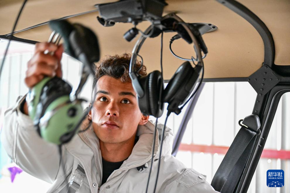 阳光穿透直升机舷窗,轻柔地洒在米尔别克·特留别克轮廓分明的脸上。在伊犁河谷的上空,这位23岁的哈萨克族小伙,身着帅气的飞行员工作服,头戴专业耳麦,正驾驶着罗宾逊R44型直升机,有条不紊地开展针对性飞行训练。