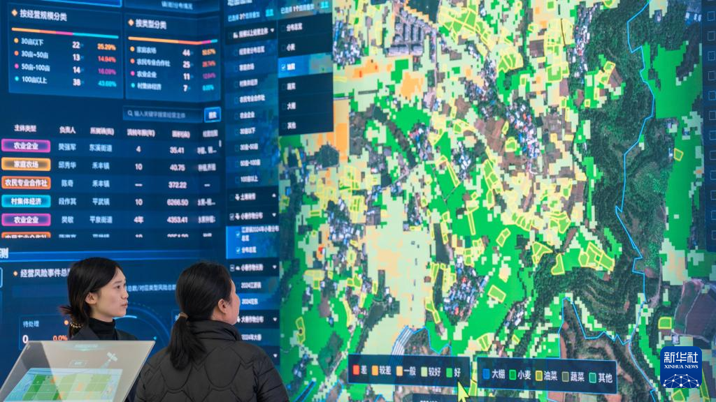 3月13日,在四川天府新区眉山片区环天智慧科技股份有限公司,技术人员通过卫星遥感系统分析农作物长势,精准制定田间管理方案。
