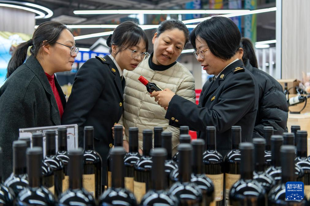 3月14日,浙江省金华市金义综保区进口商品直购中心内,金华海关关员向前来购买跨境商品的顾客介绍质量安全风险和选购提示。